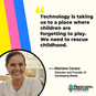 Yeah, and I think sometimes it’s easy to take for granted, as an educator, what you know about children’s development. So, a message to all the early-childhood educators out there: Don’t forget, you’re the experts. You’re the professionals who know about child development and the things a lot of parents out there don’t know. For example, the impact of excessive use of technology at home. And so you all can be the ones educating parents and families about that. And I think that’s a very important message from Mariana, as well.